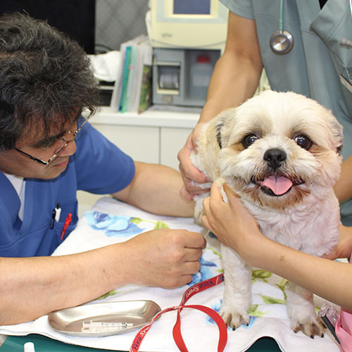 ワンちゃんの飼い主様には、法的に狂犬病予防接種の義務がございます。狂犬病は海外ではまだ多くのワンちゃんが発症し命を落としています。人間にも感染する恐ろしい病気ですので、必ず接種するようにしましょう。